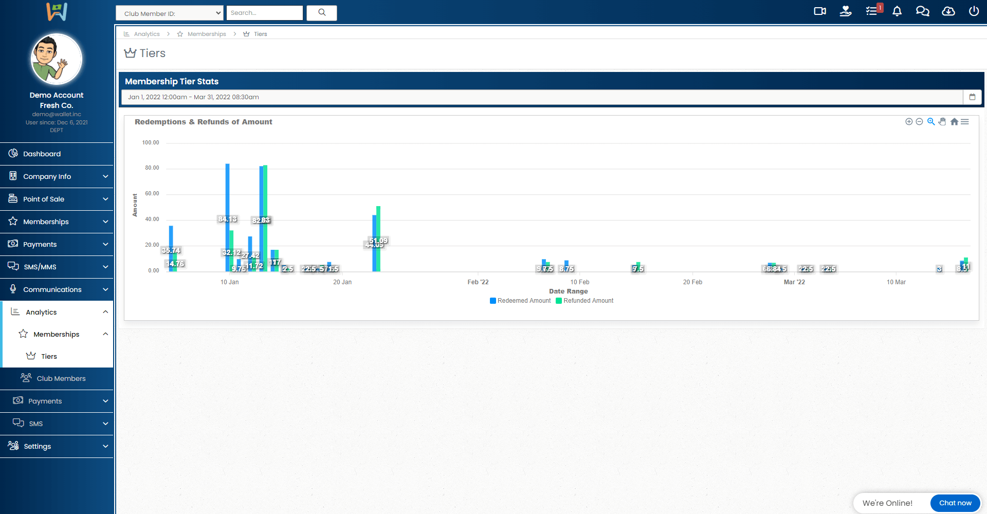 The "Membership Tier Stats" page is where you and your team can track redemptions and refunds by amount across tiers.